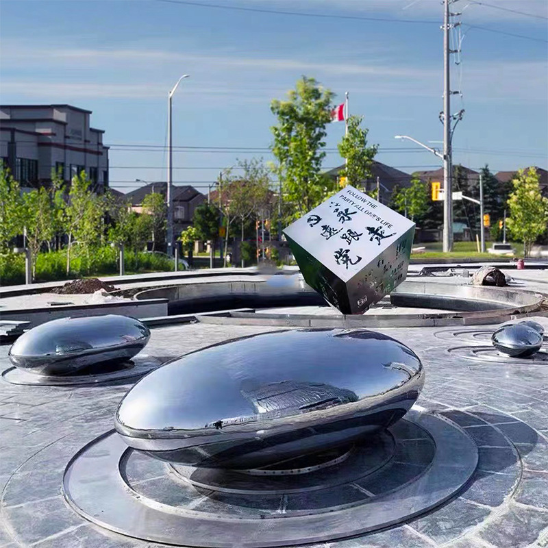 Cermin baja tahan karat kerikil patung batu geometris kreatif logam semprotan tetesan air taman lanskap dekorasi luar ruangan
