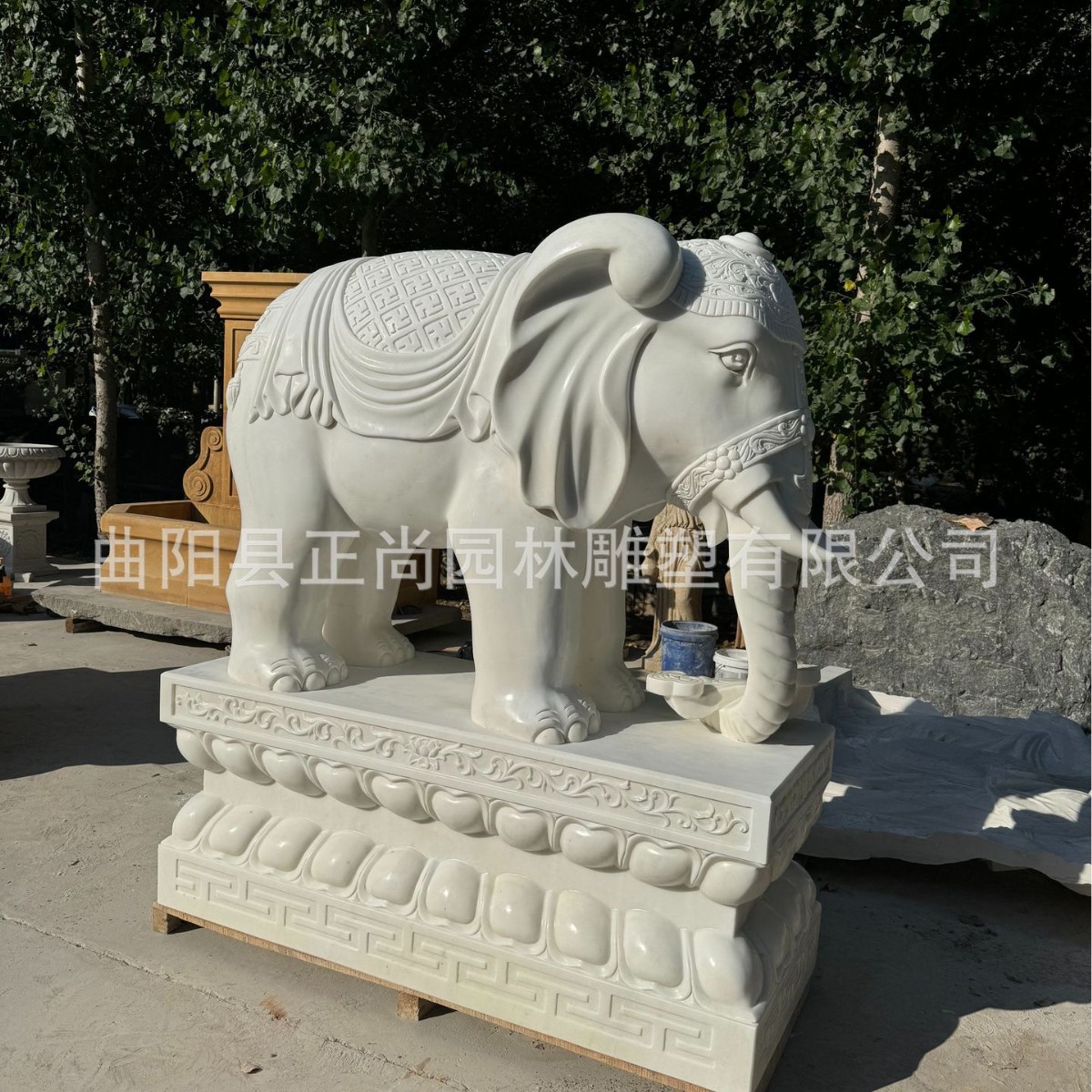 Patung gajah ukiran batu, ornamen dekorasi pintu persegi tempat indah hewan simulasi marmer besar