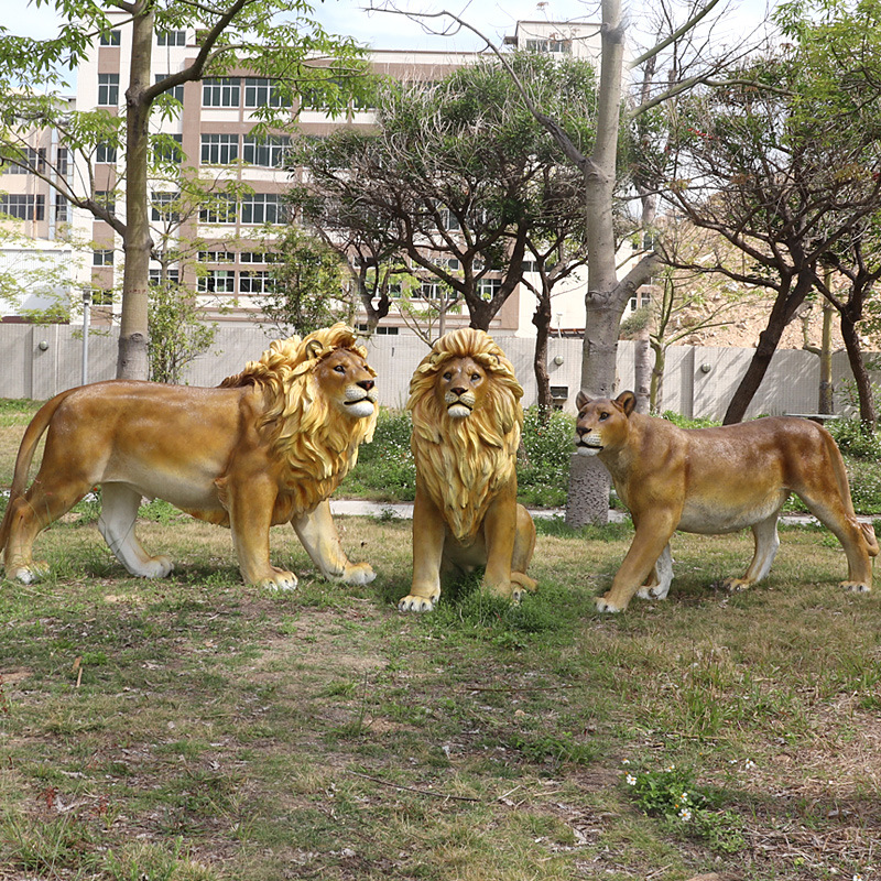Taman luar ruangan simulasi tempat indah taman alam liar singa besar model FRP dekorasi patung