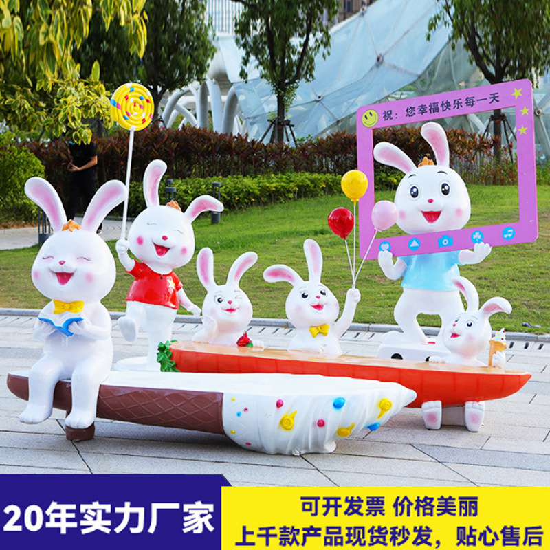 Kursi hewan kartun taman kanak-kanak luar ruangan patung kelinci panda jerapah bangku duduk Dekorasi besar foto lucu