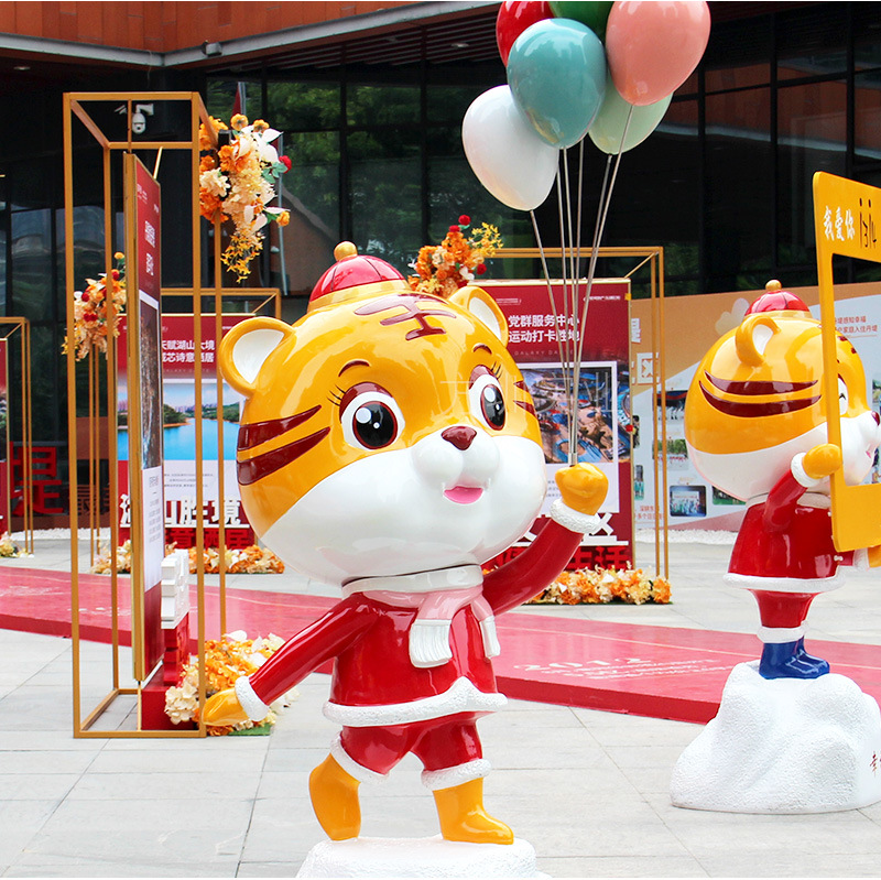 Dekorasi musim semi kartun maskot 2022 Tahun Baru harimau zodiak besar komersial dekorasi kecantikan patung serat kaca Tahun Baru