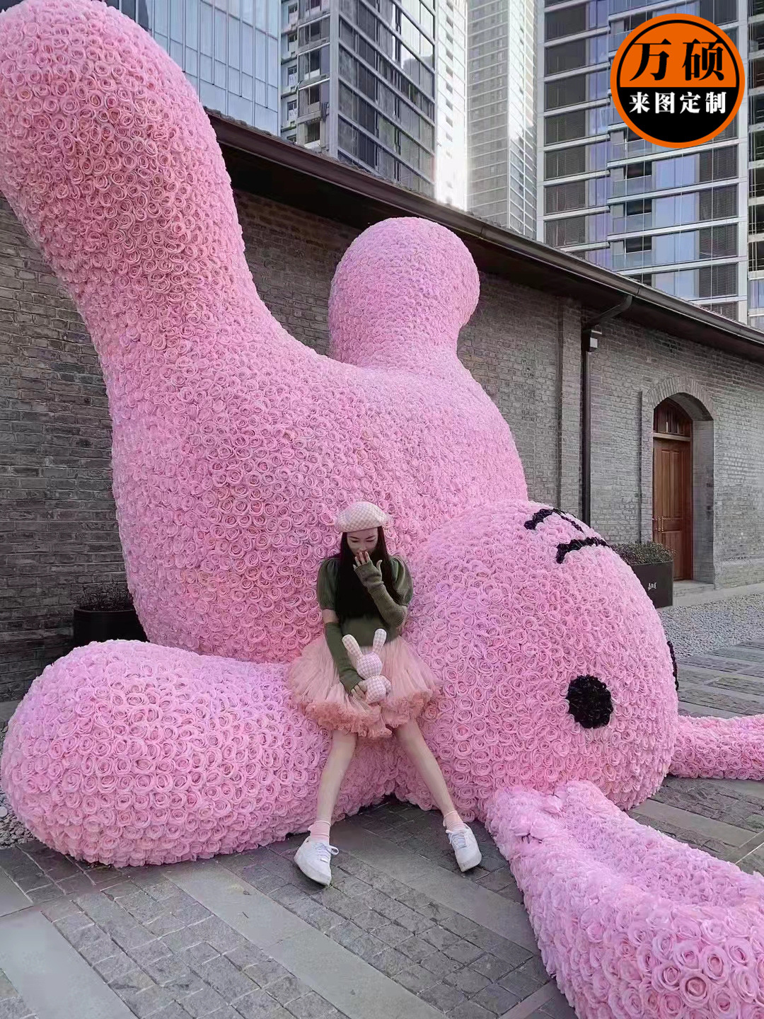 Patung bunga buatan, pemandangan dekoratif luar ruangan, meichen bunga kelinci buket besar kustomisasi patung serat kaca