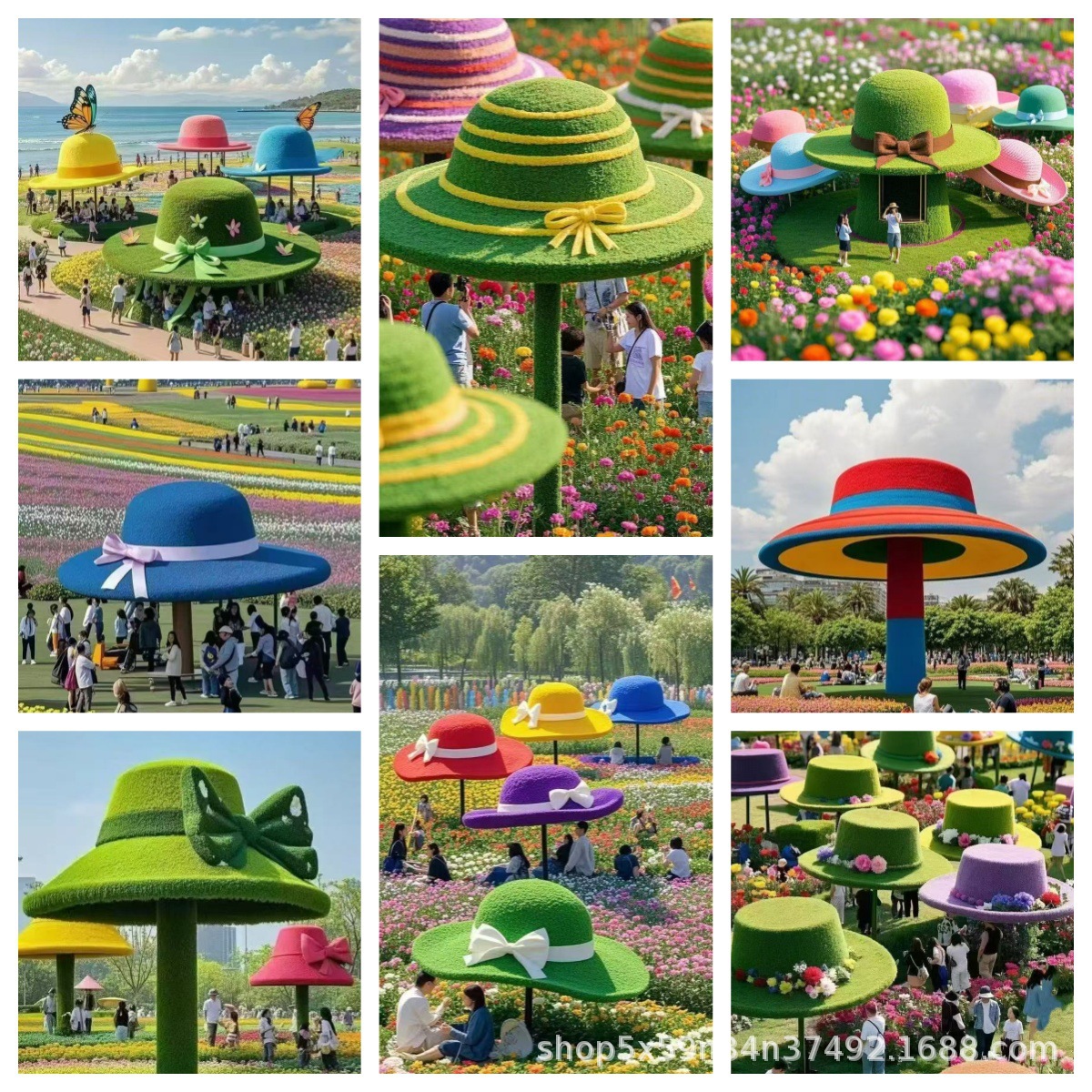 Patung Topi Jerami Rotan Raksasa Lanskap Luar Ruangan Simulasi Patung Hijau Gazebo Selebgram