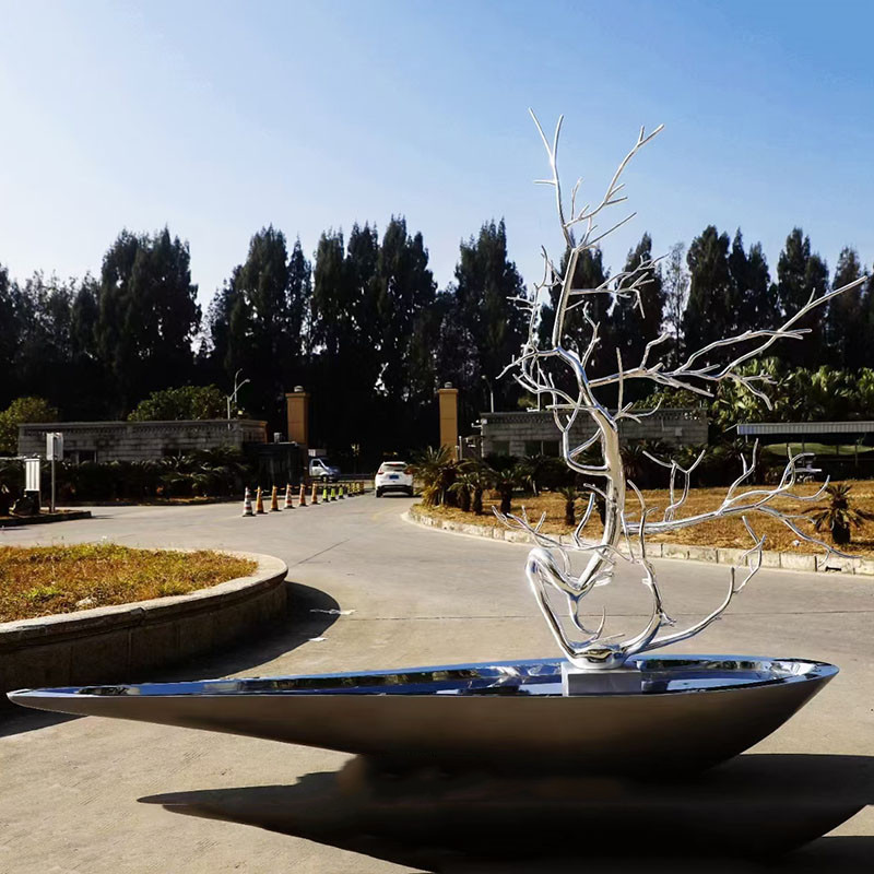 Lanskap besar patung baja tahan karat pabrik luar ruangan taman persegi logam koridor penjualan kantor Dekorasi lantai