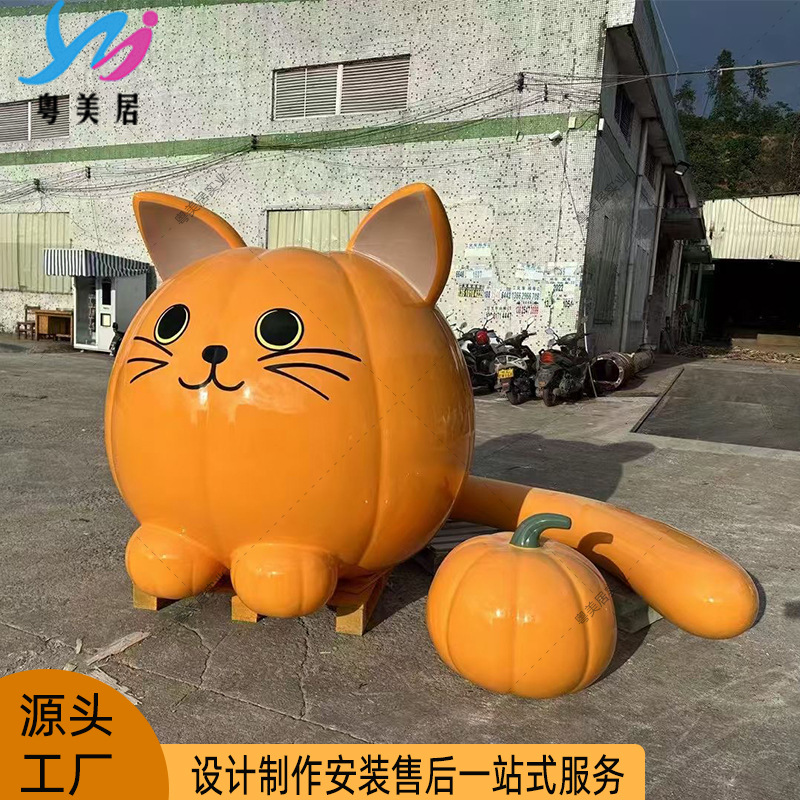 FRP Simulasi Patung Kucing Labu Luar Ruangan Taman Area Pemandangan Indah Dekorasi Model Sayuran Besar