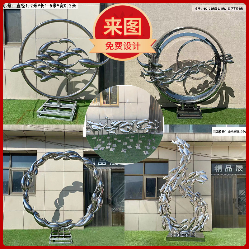 Cermin besi tahan karat patung kelompok ikan area tempat tinggal hotel pintu masuk besi tempa dekorasi karya seni lanskap sketsa ikan