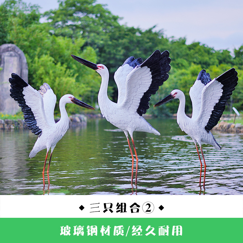 Patung derek putih buatan, dekorasi toko putih, serat kaca kolam air dekorasi luar ruangan taman egret lanskap model derek