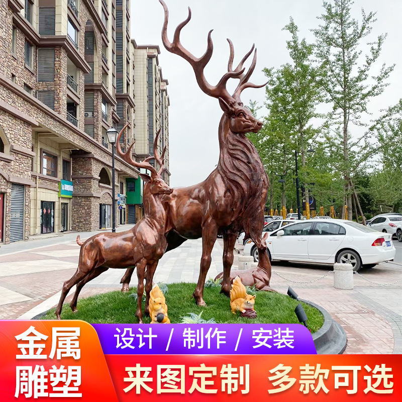 Patung rusa logam lanskap patung logam baja antikarat persegi ornamen patung berongga hewan
