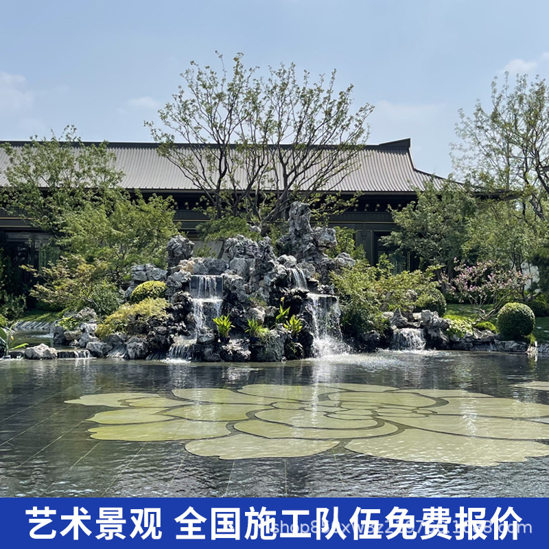 Danau batu paviliun luar ruangan halaman pemodelan batu lanskap batu lanskap kolam ikan batu tepi batu bank