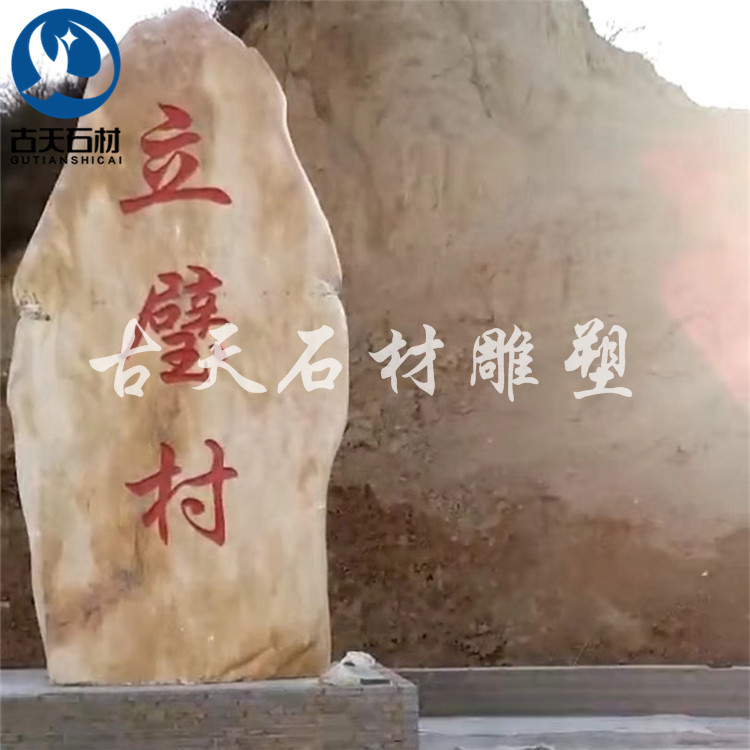 Batu lanskap, batu berukir warna merah senja, batu budaya, papan nama desa, rambu jalan, batu pemandangan, batu unik, batu budaya, batu Taishan, batu lilin kuning