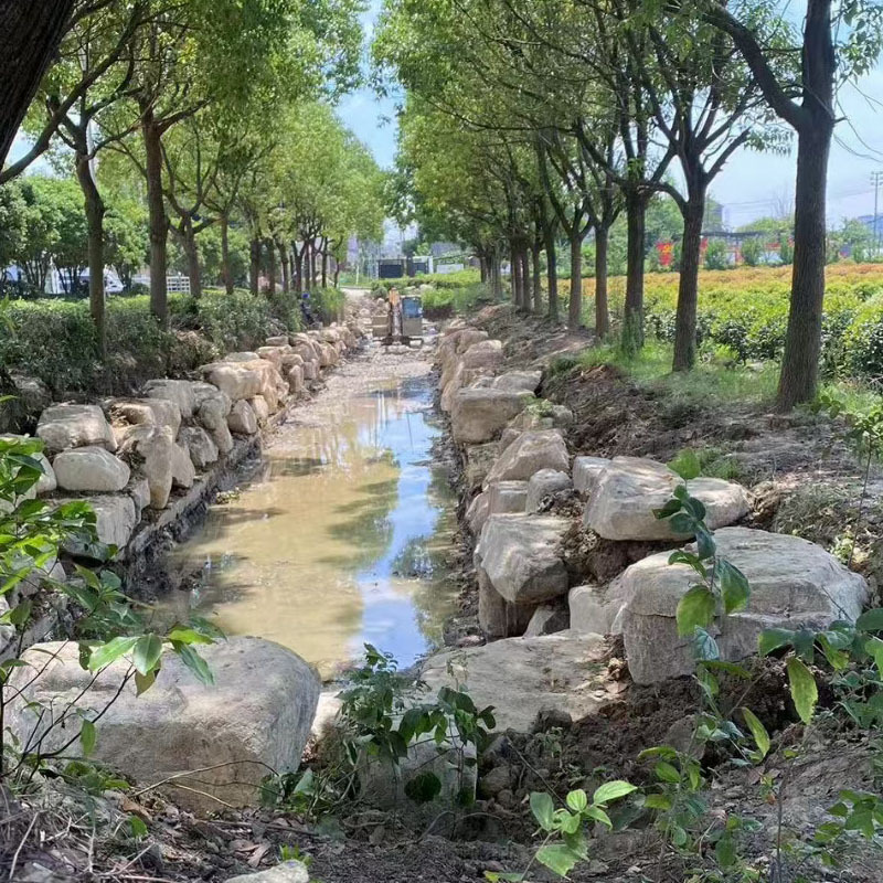Huangshi grosir kebun kebun batu revetment lanskap taman batu lanskap taman batu hijau tanah rumput batu sungai batu aliran