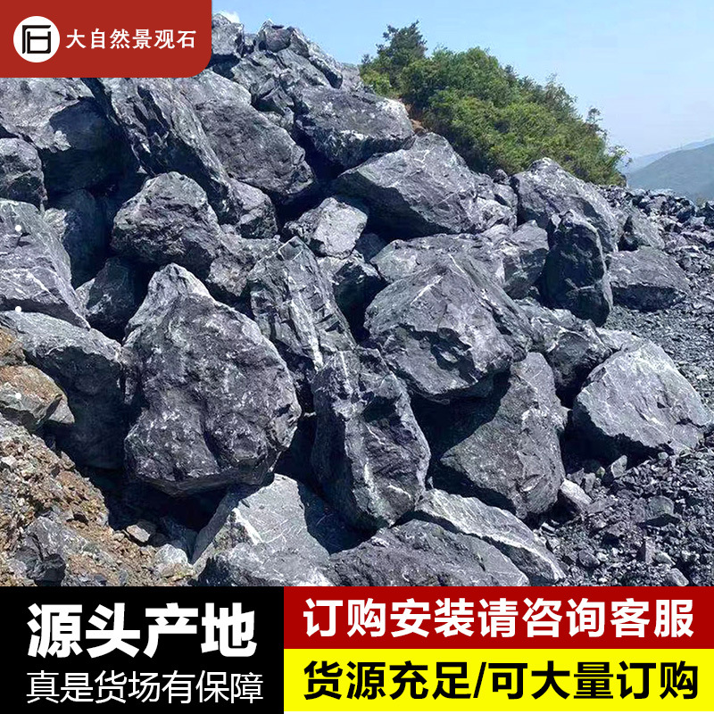 Batu Gunung Hitam Batu Mentah Batu Lansekap Dekorasi Halaman Luar Ruangan Batu Lanskap Pemandangan Kering Jepang Batu Hitam Berhias Batu