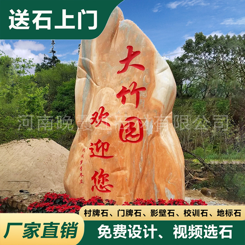 Simbol jalan batu lanskap merah matahari terbenam logo desa batu logo tablet komunitas desa pintu masuk batu taman plat pintu ukiran batu produsen