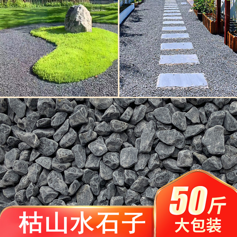 Lanskap kering pemandangan abu-abu gelap kerikil hitam batu dicuci gaya Jepang dekorasi taman lanskap batu pecah bluestone batu beras