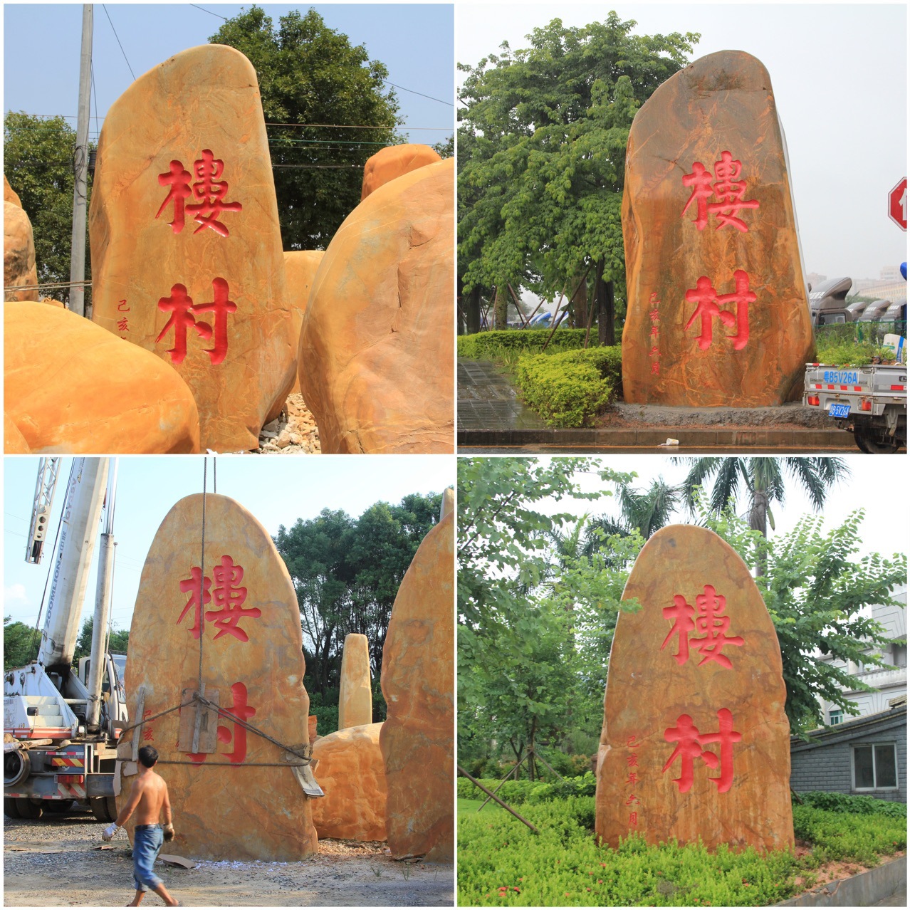 Batu lanskap Guangdong batu kuning lilin batu berbaring batu ukiran tanda Desa Batu Tanda batu batu cornerstone batu lanskap taman