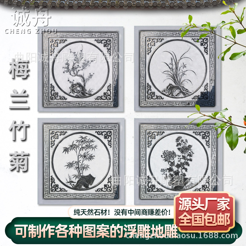 Ukiran batu berlian buatan tanah, dekorasi relief batu taman luar ruangan, ukiran bunga krisan Bambu Anggrek plum, ukiran berlian imitasi gaya Tiongkok baru