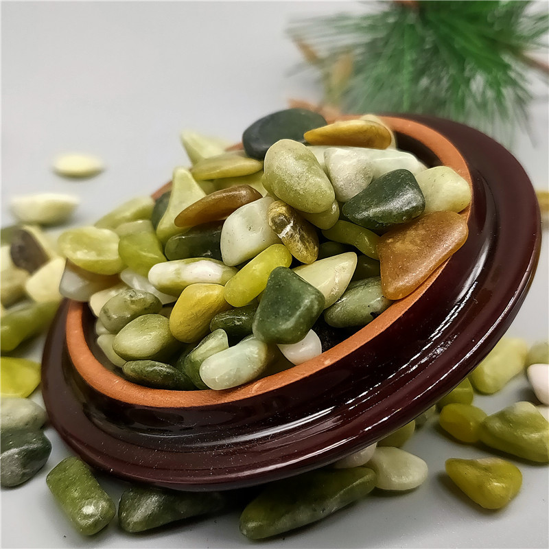Pasokan hijau giok warna-warni pot berkebun batu warna mekanisme pemolesan batu bulat