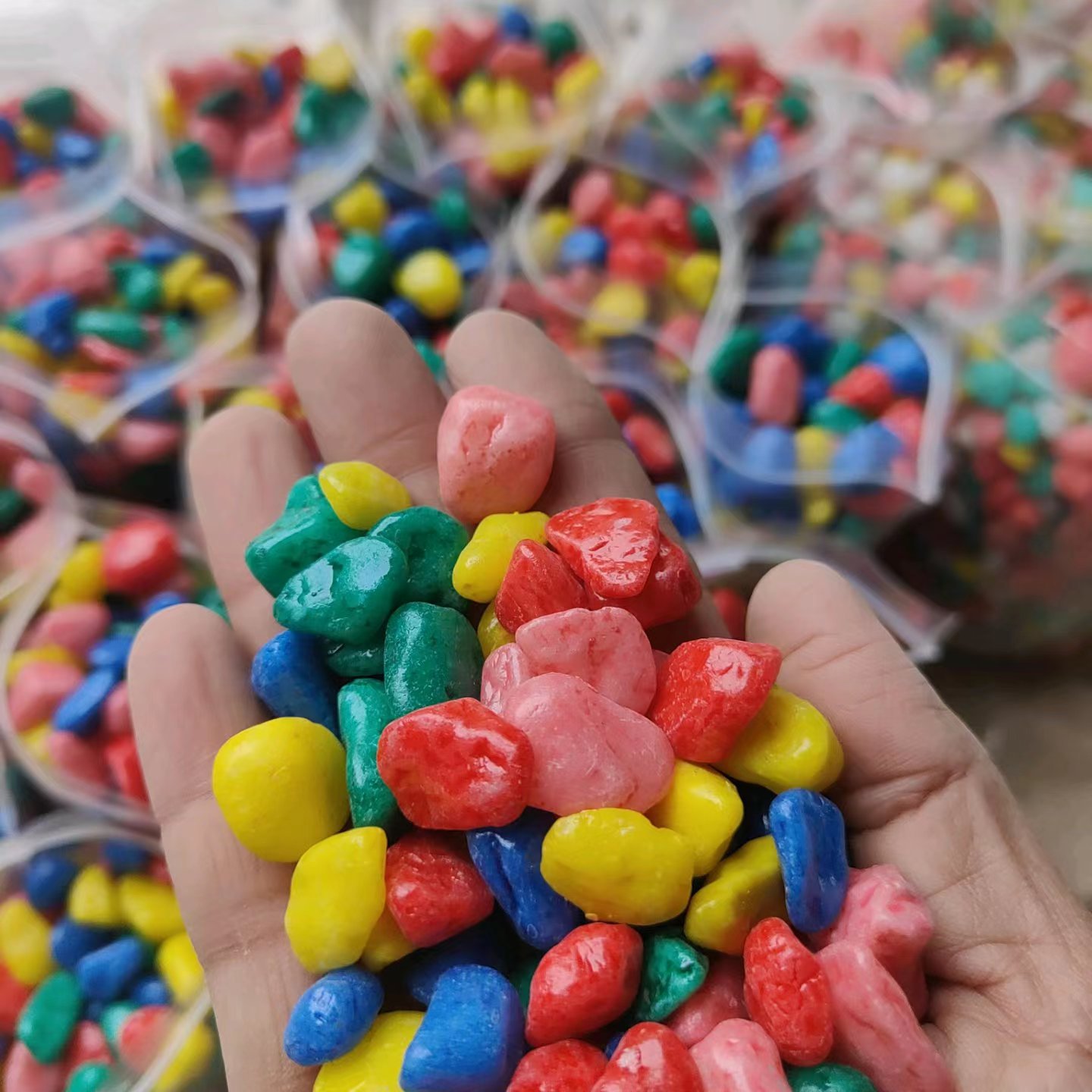 Tidak beracun perlindungan lingkungan batu celup warna beras akuarium batu celup warna-warni batu dinding eksterior taman batu beras batu warna-warni grosir