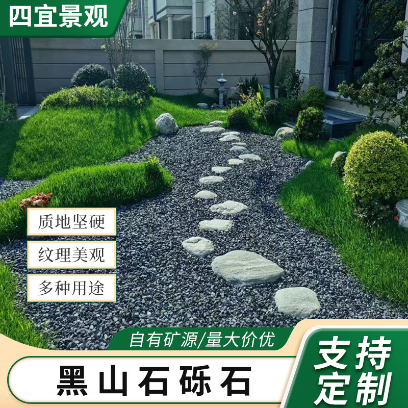 Gelap abu-abu hitam pemandangan kerikil dicuci batu gaya Jepang taman lanskap batu hijau batu hancur batu beras batu