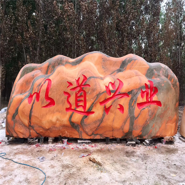 Batu lanskap merah matahari terbenam terukir unit pemandangan plat pintu landmark batu taman slogan batu berdiri ukiran batu lanskap batu