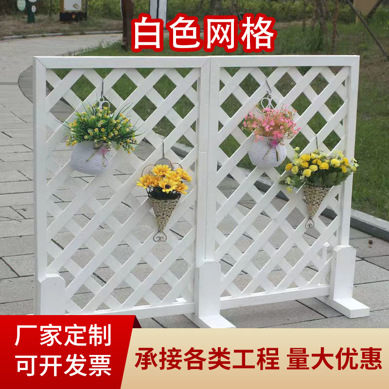 Pabrik grosir mesh putih pagar kayu dikarbonisasi pagar anti-korosi kayu pagar berkebun pot bunga braket halaman pagar