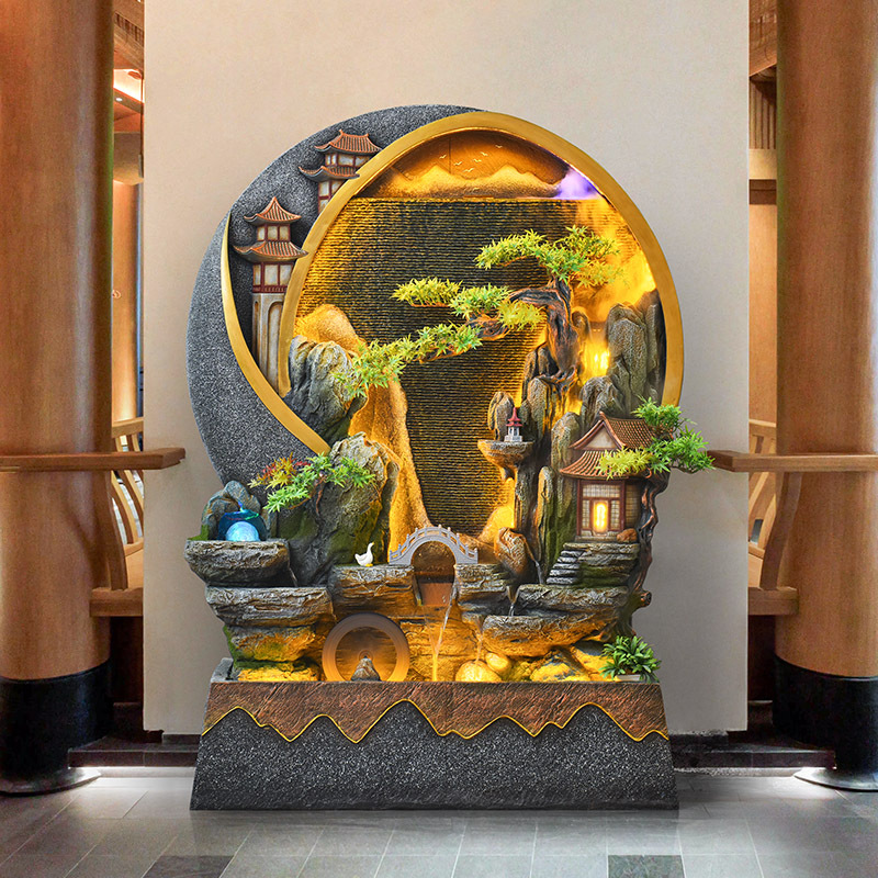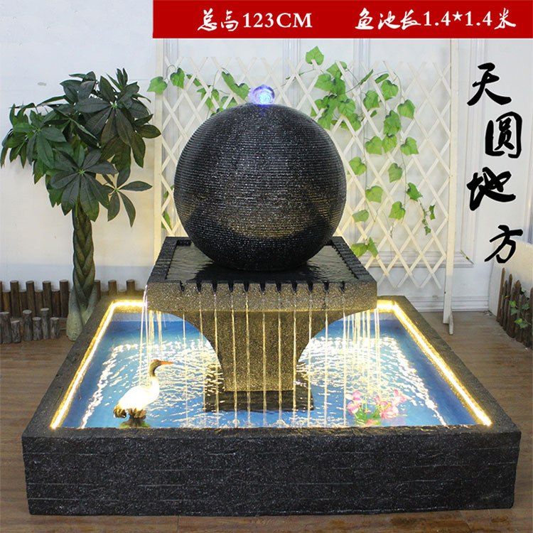 Dekorasi kantor air mengalir batu karang luar ruangan, Dekorasi Keberuntungan lantai ruang tamu bola feng shui air mancur