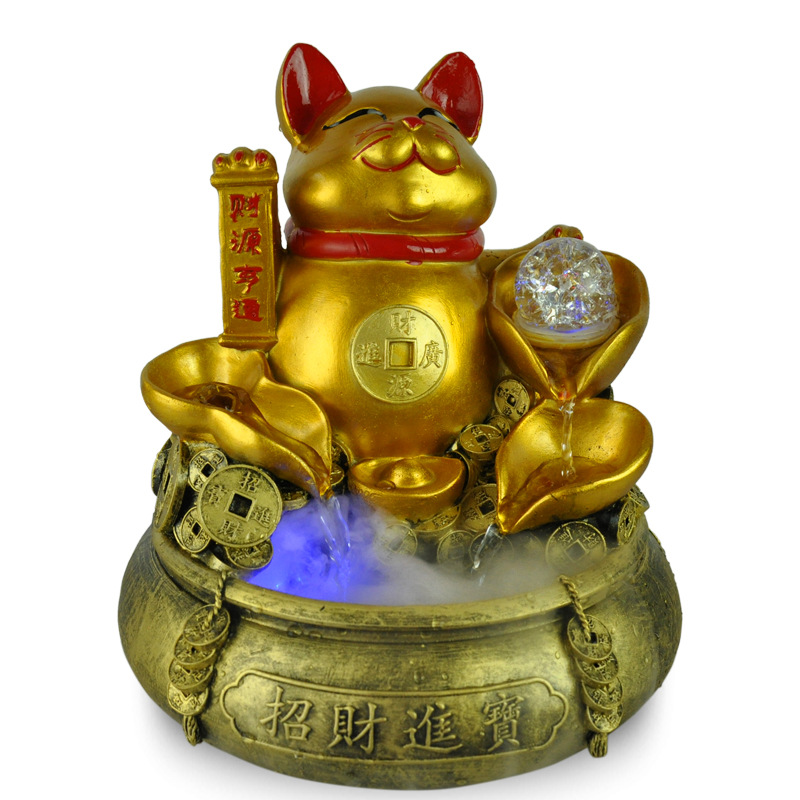 Air mancur kucing keberuntungan pemandangan air, kolam ikan balkon lorong taman desktop roda feng shui kecil dekorasi lanskap bola kristal