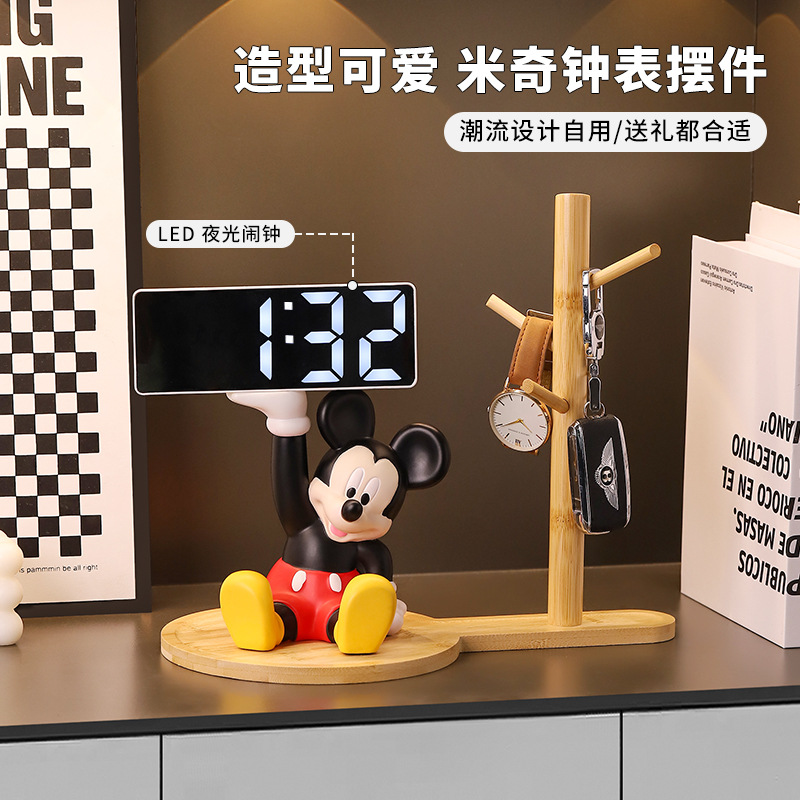 卡通米奇时钟摆件客厅卧室桌面台式钟表摆设电子钟闹钟家居装饰品