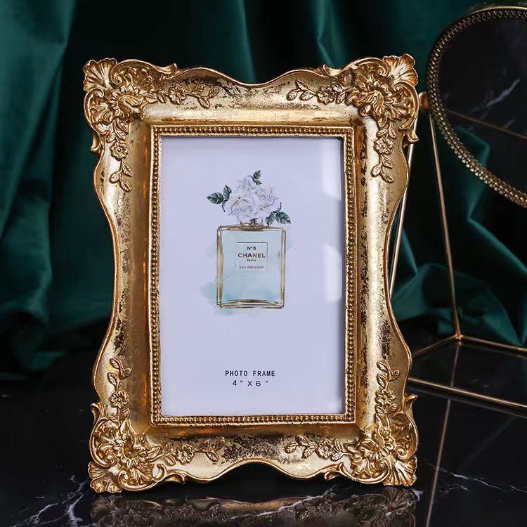 Diekspor ke Perancis cahaya mewah elegan istana gaya putri retro tepi emas diukir 6 inci 7 inci bingkai foto kerajinan resin
