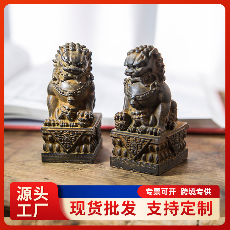 Mini gaya nasional batu karat singa kreatif meja kantor ornamen kecil dekorasi lanskap dekorasi resin teh hewan peliharaan pasangan