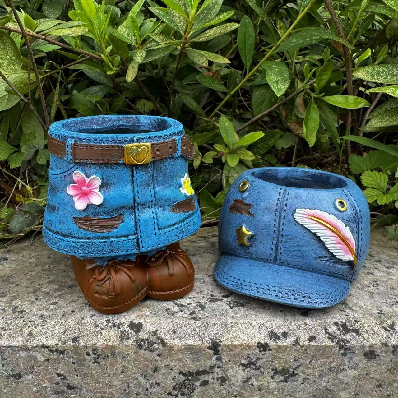 Rok Denim Taman Luar Ruangan Model Baru Lintas Batas Topi Dekorasi Pot Bunga Polidaging Ornamen Kerajinan Resin