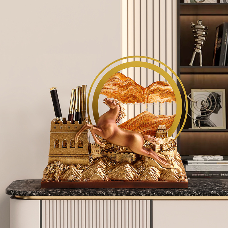 Gaya Tiongkok Baru Kuda Sukses Tempat Pena Kreatif Pasir Menghisap Ornamen Ruang Tamu Mewah Ringan Hadiah Dekorasi Kantor Kelas Atas