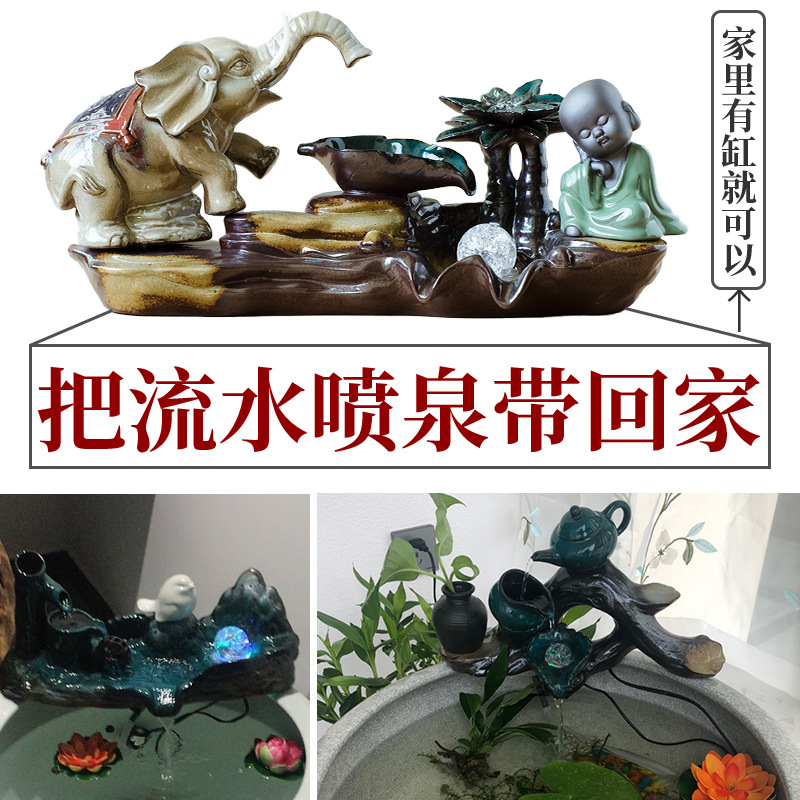 Lampu keramik cincin air mancur dekorasi lanskap tangki ikan ruang tamu feng shui Keberuntungan kantor dekorasi rumah desktop