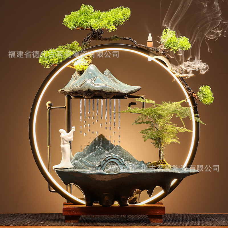 Dekorasi air keberuntungan gaya Tiongkok, dekorasi kecil keramik meja tamu meja teh dekorasi kantor lanskap sirkulasi air