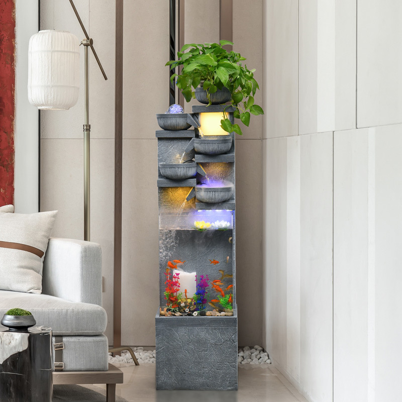 Sederhana segar gaya Eropa mengalir air dekorasi bebatuan pemandangan tangki ikan ruang tamu hotel perusahaan membuka Dekorasi lantai