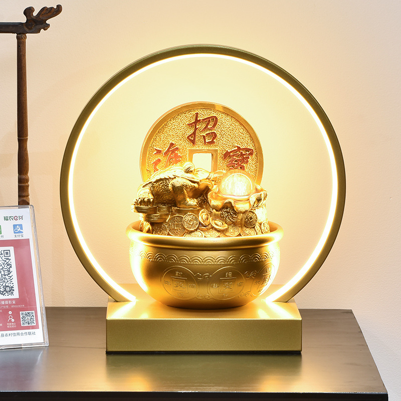 Dekorasi atas meja air kodok emas gaya Cina baru pelembap meriah dekorasi meja sirkulasi air belajar ikan mas lanskap air