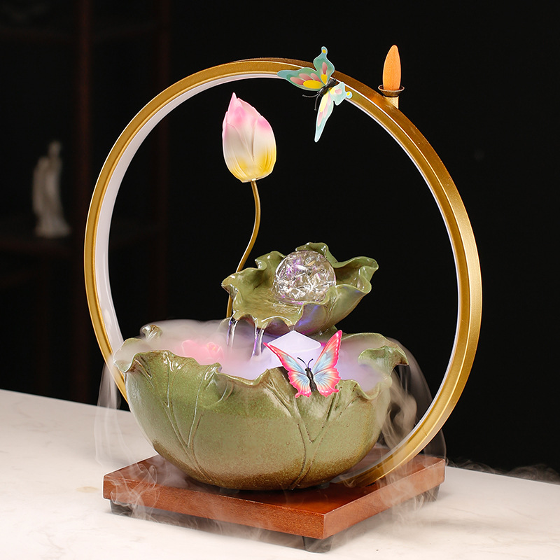 Lotus dekorasi aliran air bunga bud kupu-kupu kecil tangki ikan rumah desktop besi sumber pabrik hadiah sirkulasi air