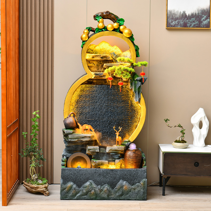 Dekorasi aliran air sirkulasi air tirai dinding gaya Cina baru ruang tamu pintu masuk lantai labu batu kolam ikan lanskap mengumpulkan kekayaan Dekorasi