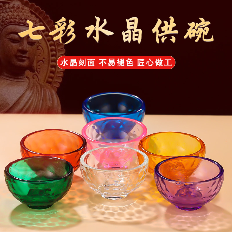 Mangkuk kristal warna-warni untuk rumah tangga mangkuk pasokan air untuk sembahyang Guanyin Bodhisattva cangkir air suci Buddha depan tujuh untuk delapan untuk kaca novel mangkuk