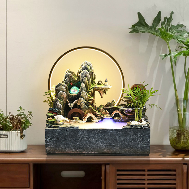 Air Mancur Permukaan Meja Ornamen Resin Ornamen Rumah Tangga Dekorasi Ruang Tamu Pintu Masuk Kreatif Air Mancur Kabut Sirkulasi Air