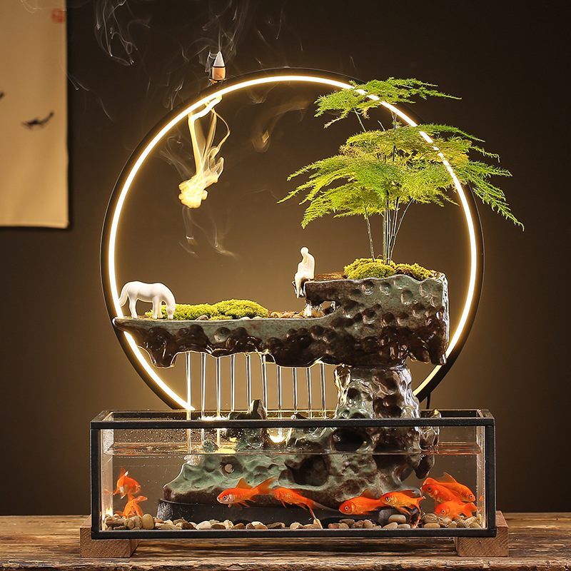 Rockery dispenser air sirkulasi keramik, kreatif pemandangan kantor desktop Dekorasi ruang tamu hadiah pembukaan