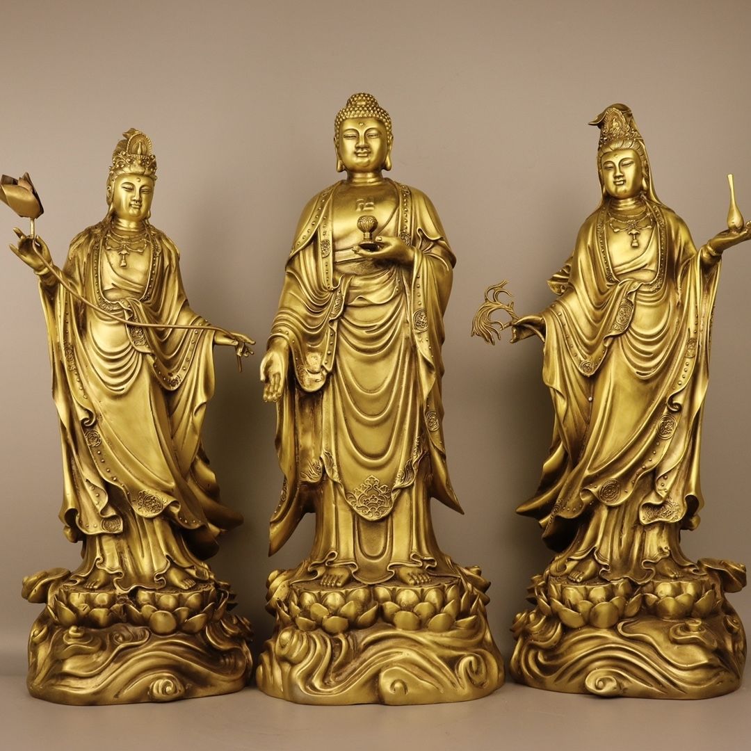 Patung Buddha tiga suci barat tembaga murni, patung dudukan Amitabha Buddha Guanyin Bodhisattva tren bagus untuk Bodhisattva tembaga pemujaan rumah