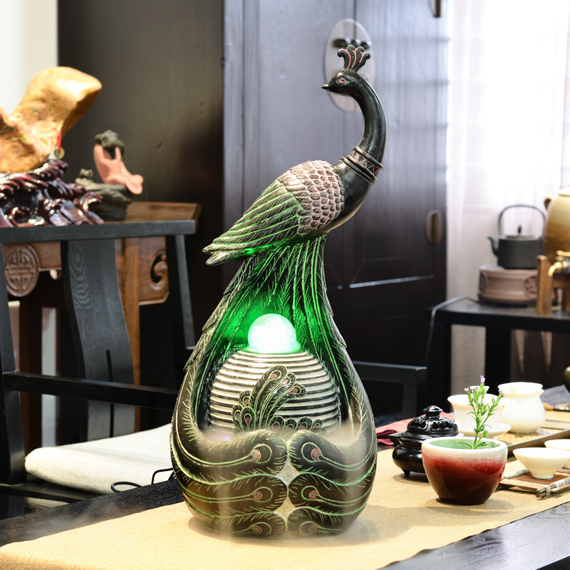 Ornamen air mancur Asia Tenggara, kerajinan Eropa perdagangan luar negeri patung Buddha merak ruang tamu lantai pemandangan air keberuntungan grosir