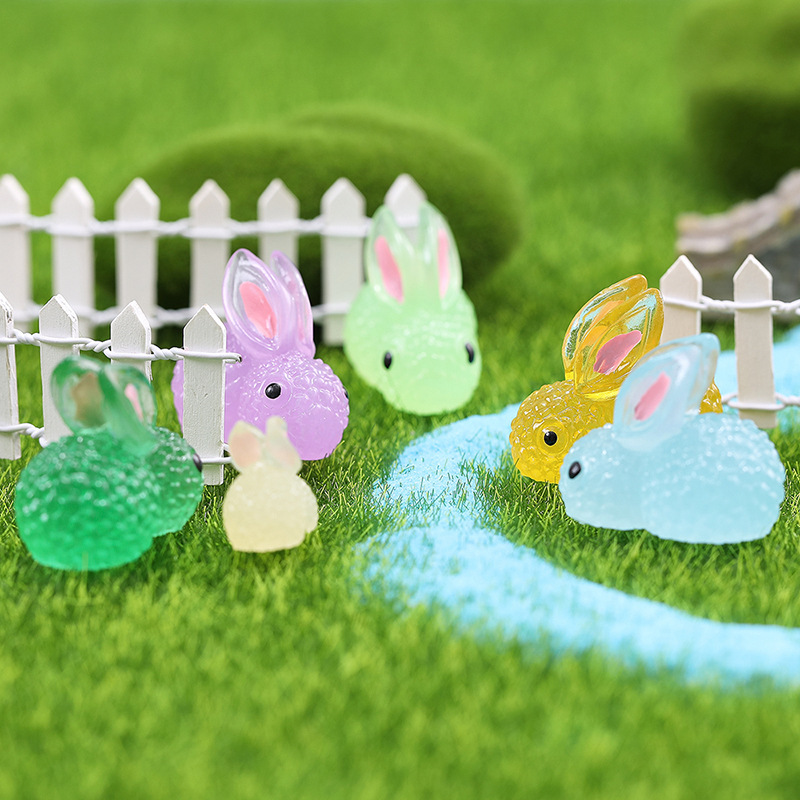 Dekorasi Microscape Aksesoris Resin Tanaman Berkebun Kelinci Luminous Kelinci Berwarna-warni Kartun Hewan Lucu