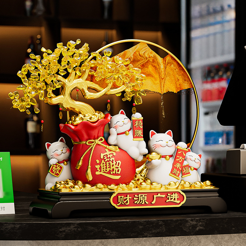 新中式发财树招财猫摆件开业礼物客厅店铺前台装饰品乔迁新居礼品