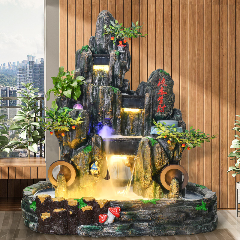 Air mancur kreatif, dekorasi pemandangan air keberuntungan untuk ruang tamu kantor tangki ikan kebun batu hadiah pembukaan lintas batas