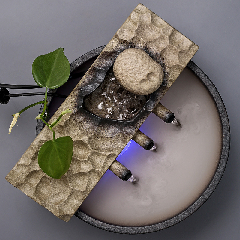 Air mancur kreatif, dekorasi pemandangan air keberuntungan untuk ruang tamu kantor tangki ikan kebun batu hadiah pembukaan lintas batas