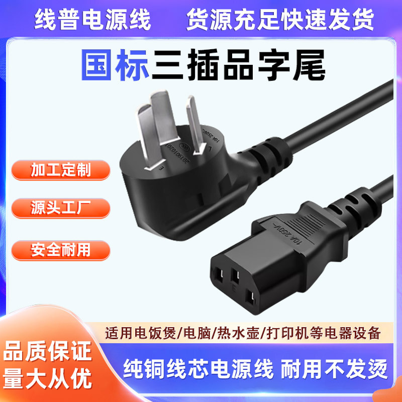 Pabrik toko standar nasional sertifikasi 3C 10A-C13 kabel daya ekor proyektor tembaga murni komputer tiga inti 3X0.75