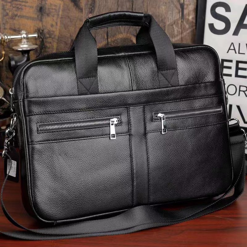 Tas Jinjing Kulit Asli Tas Kerja Bisnis Kulit Sapi Tahan Air Tas Dokumen Rapat Kapasitas Besar Tas Komputer 15 Inci