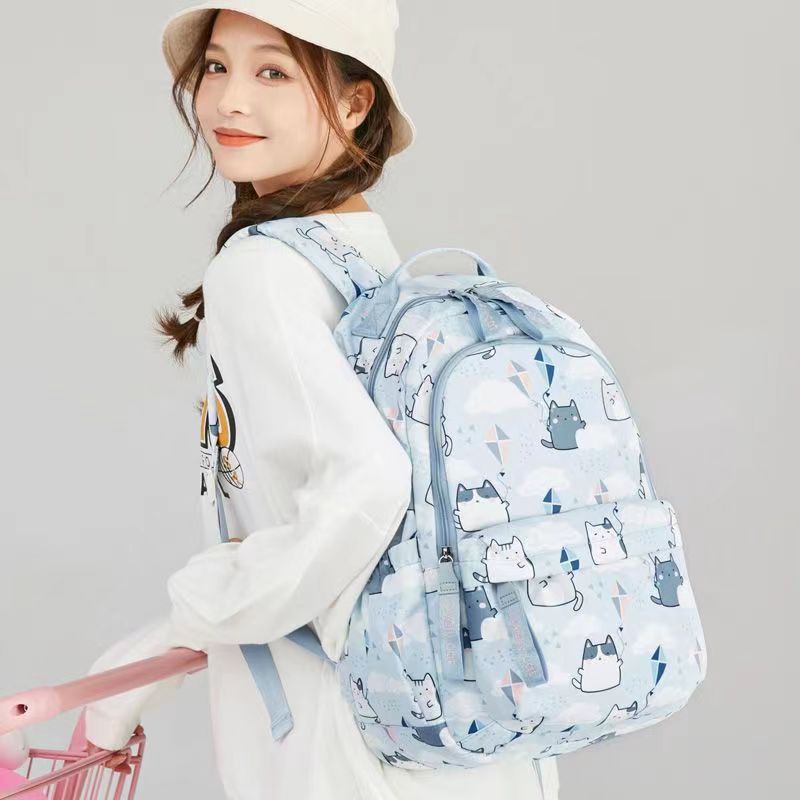 Tas sekolah gaya Korea, ransel komputer kasual wanita, tas punggung ringan bercetak gaya Korea untuk pelajar sekolah SMP